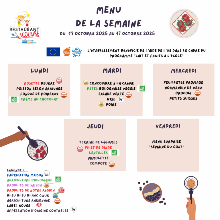menus du 13 au 17 octobre