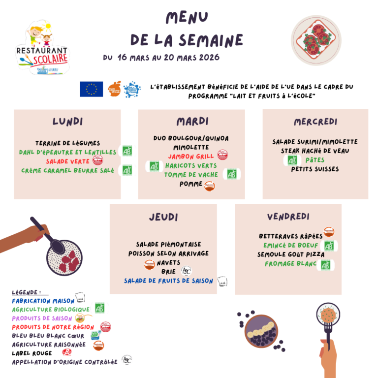 menus du 16 au 20 mars 2026